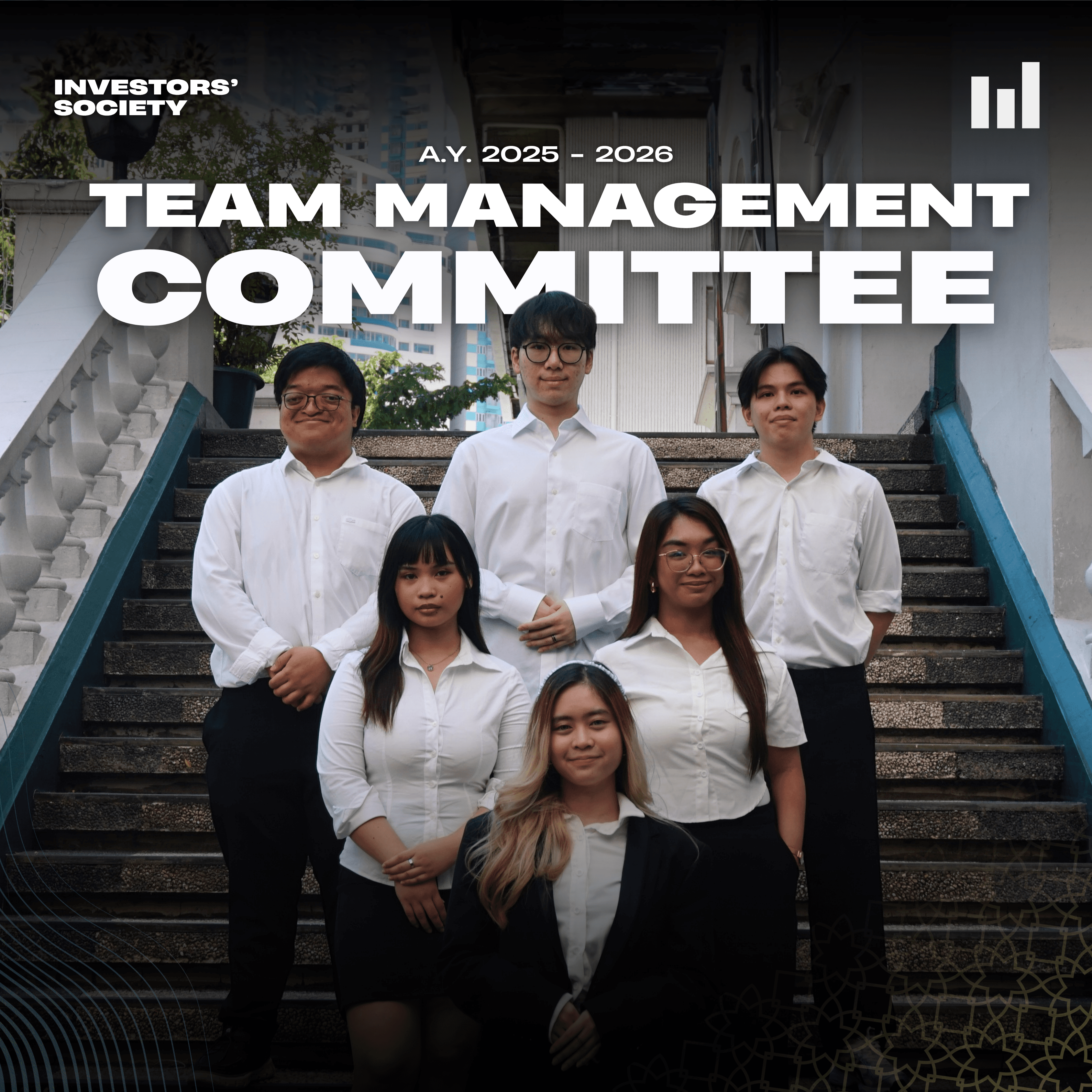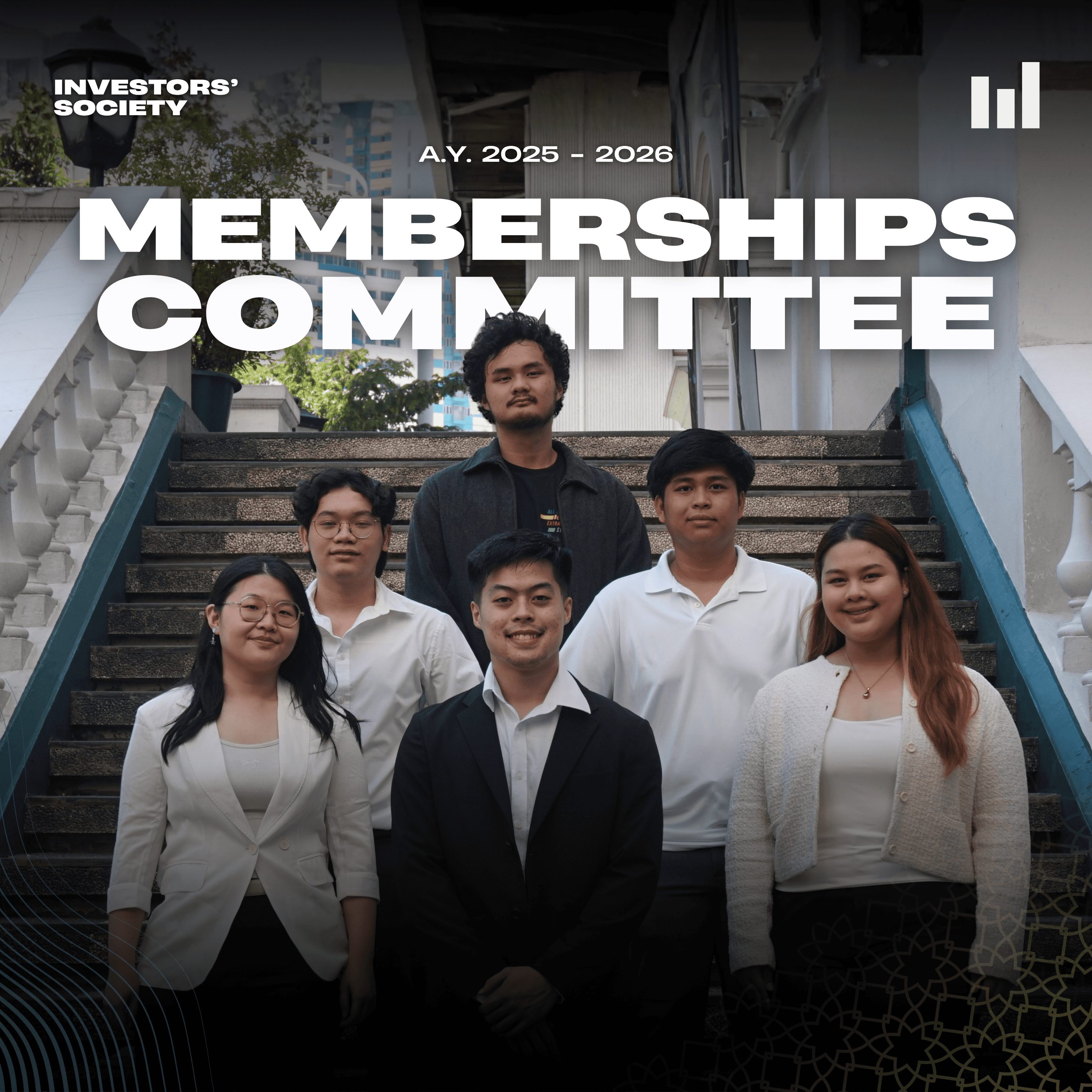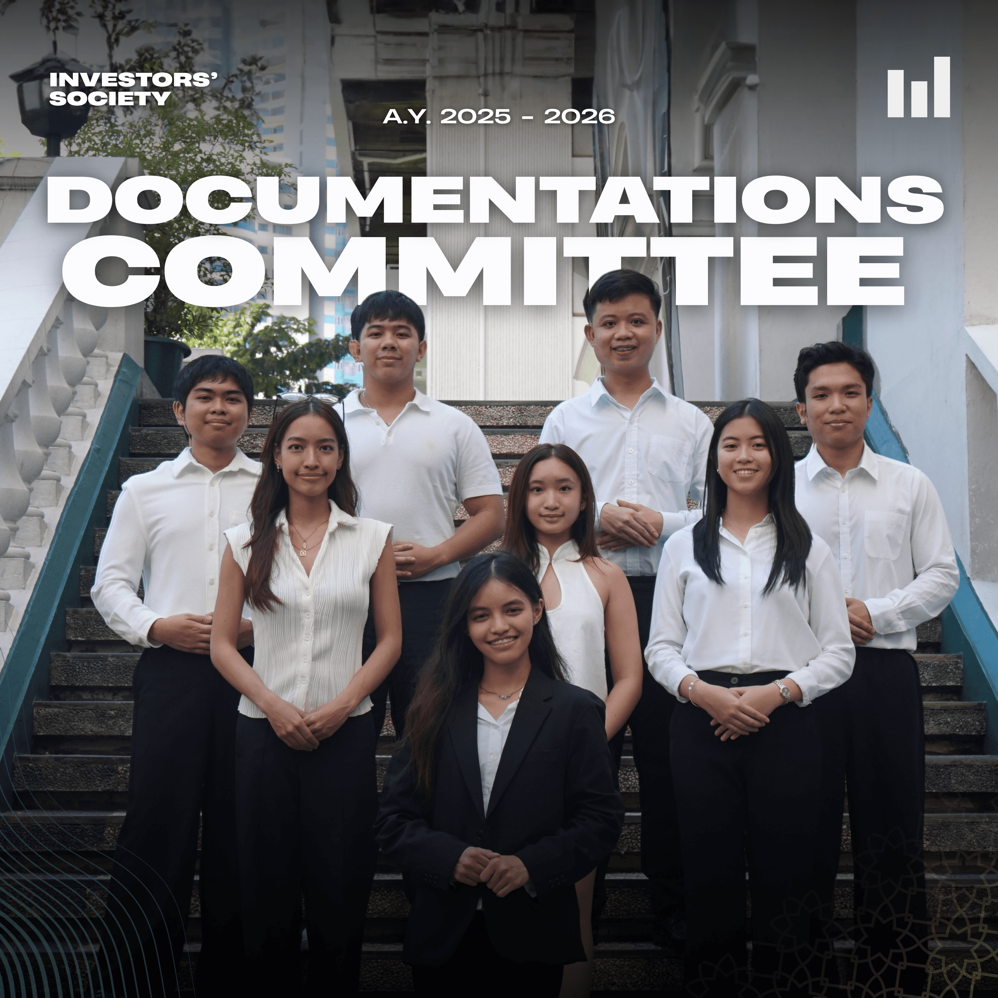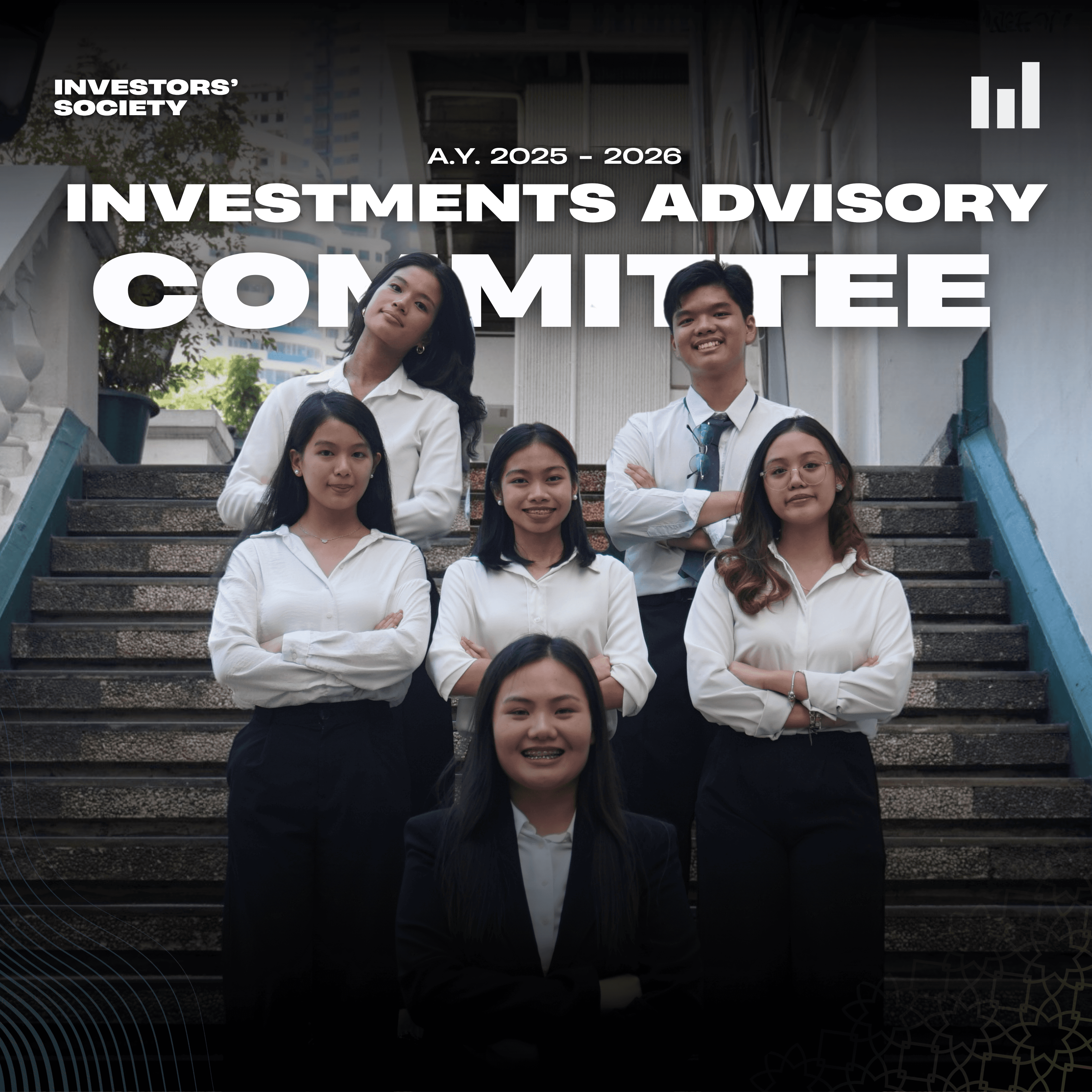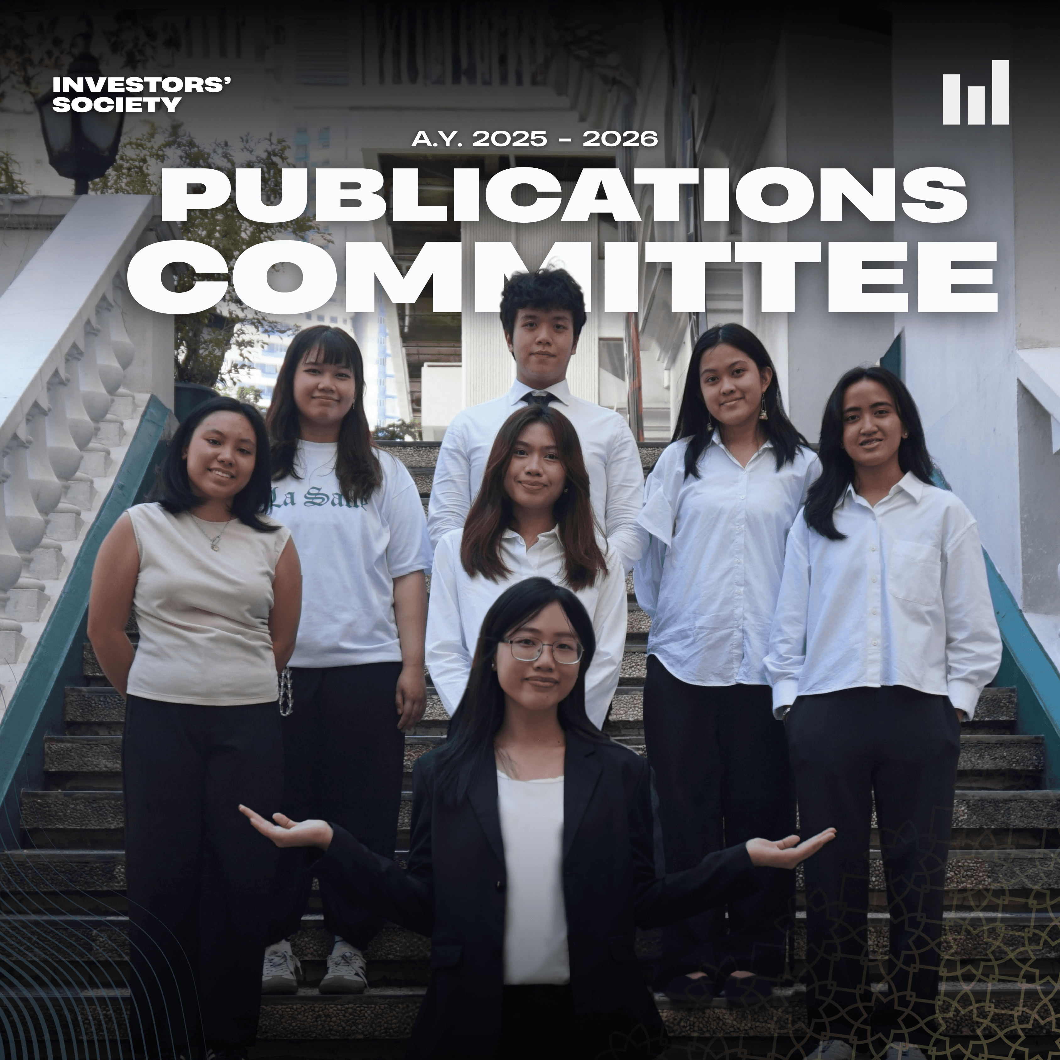 The Publications committee is the creative engine of Investors’ Society, they will be responsible for producing social media content through visual designs that reach their audience with clarity, impact, and visual appeal. From designing eye-catching layouts and editing video content, publications uphold the organization’s main branding across their social media pages and official materials. Whereas, the committee ensures that every post, campaign, and publication must reflect the mission and vision of Investors’ Society while also strengthening its identity and presence on the public.